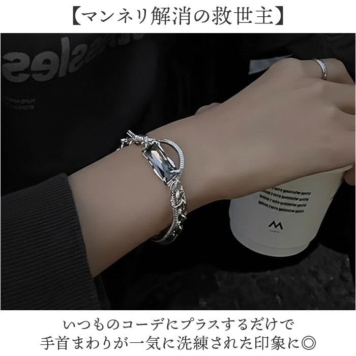 ・チェーンとビジューの競演が手元をワンランク格上げする逸品。