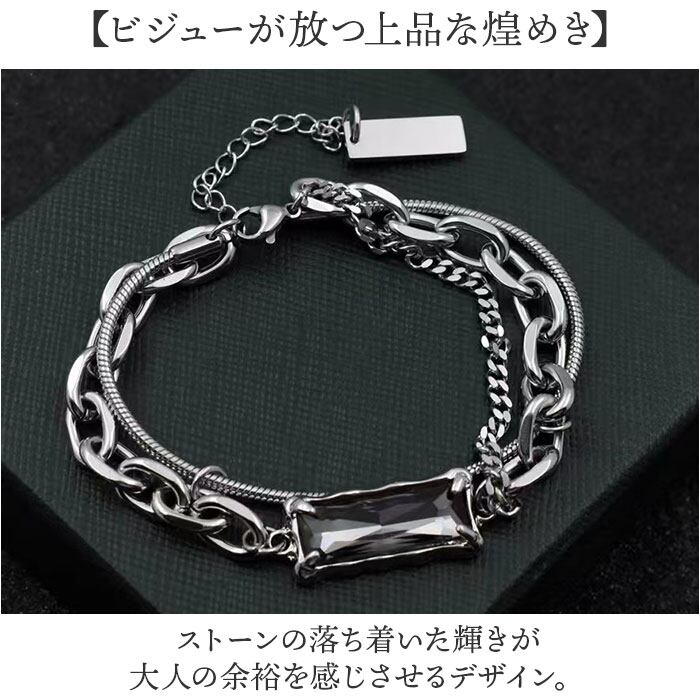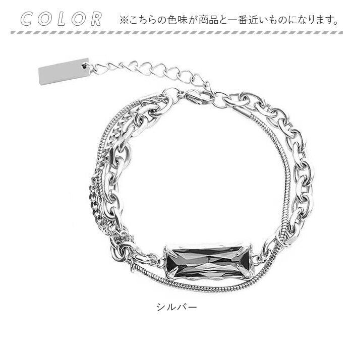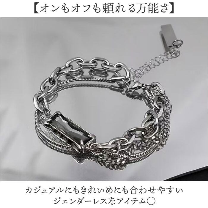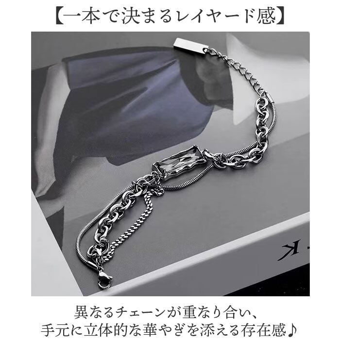 ビジューレイヤードチェーンブレスレット