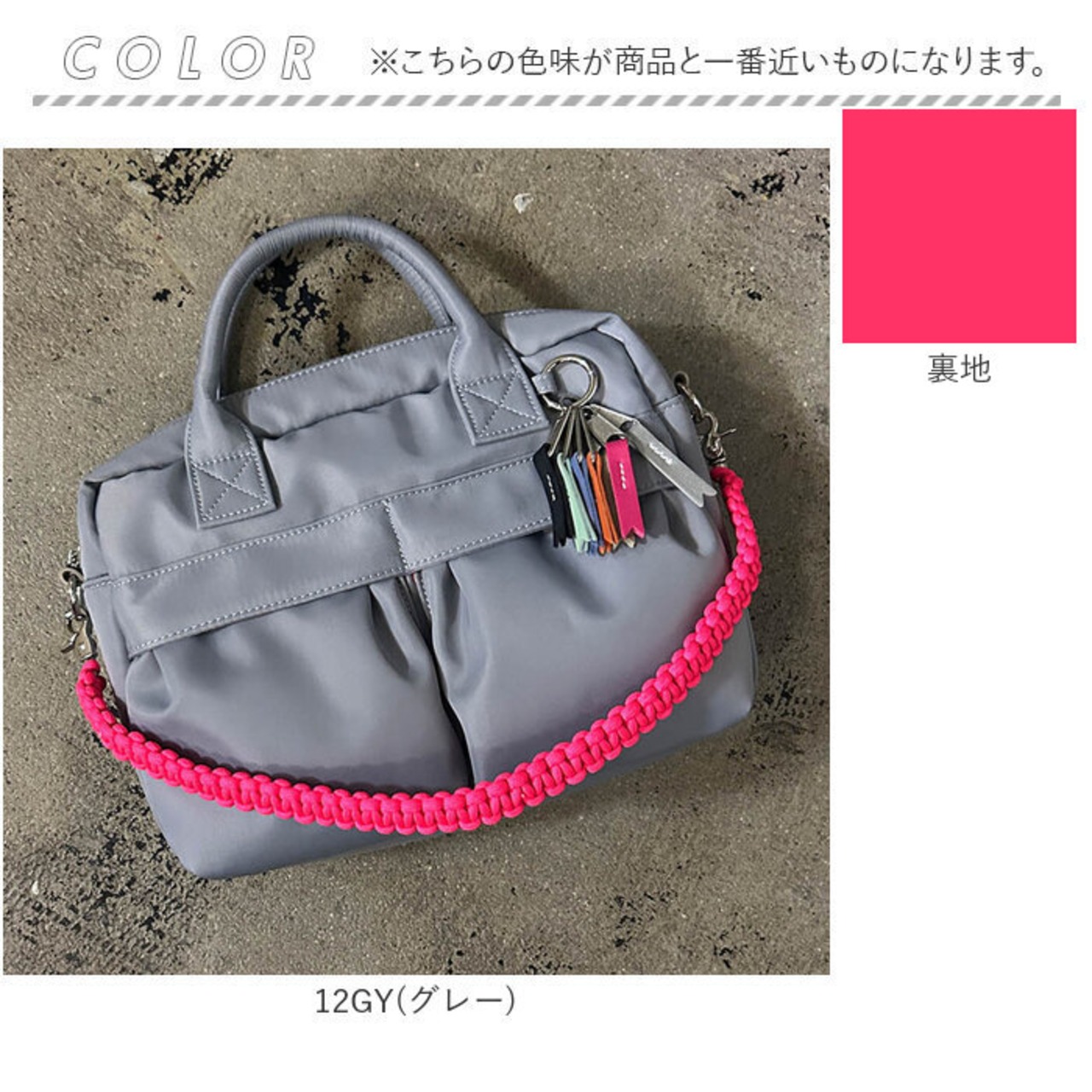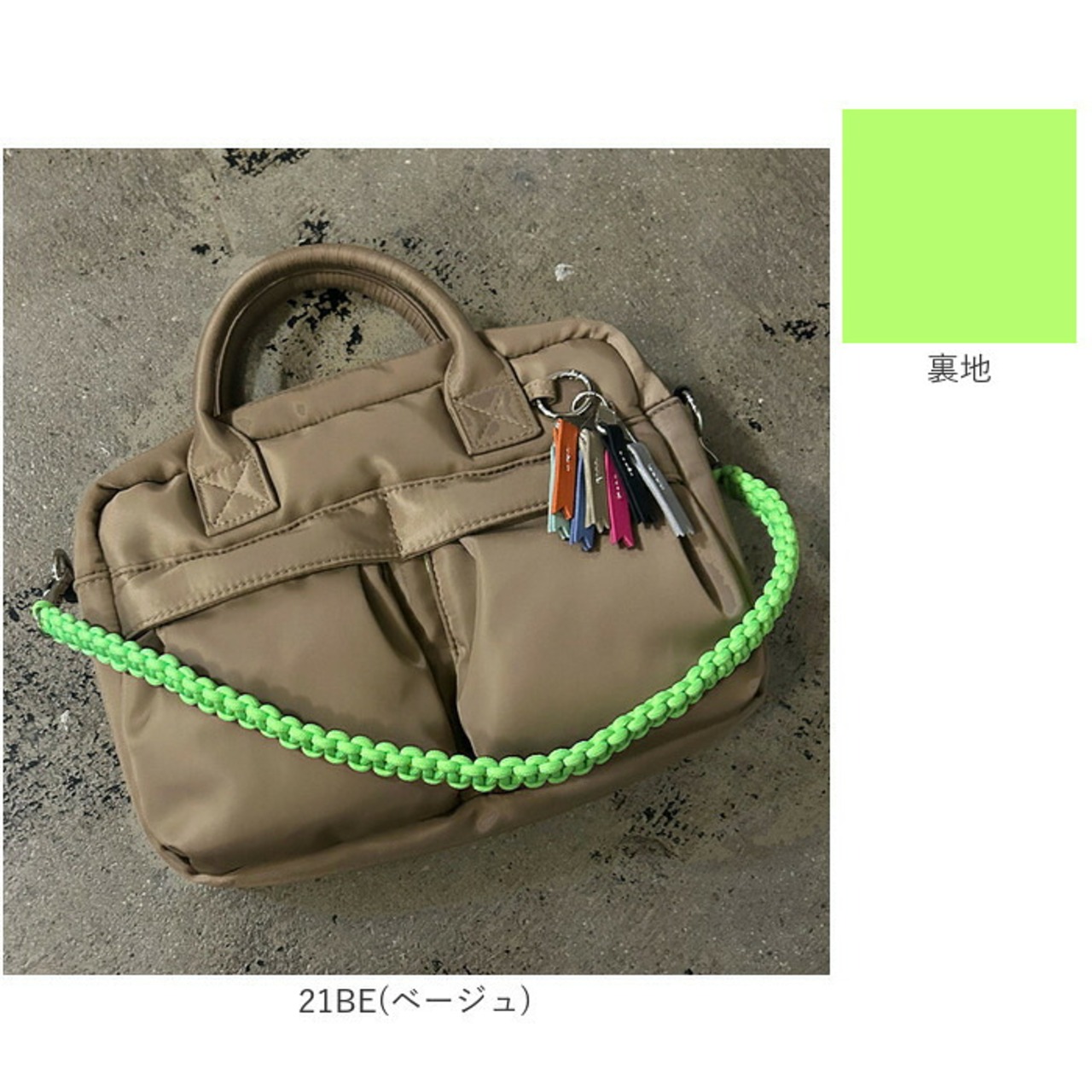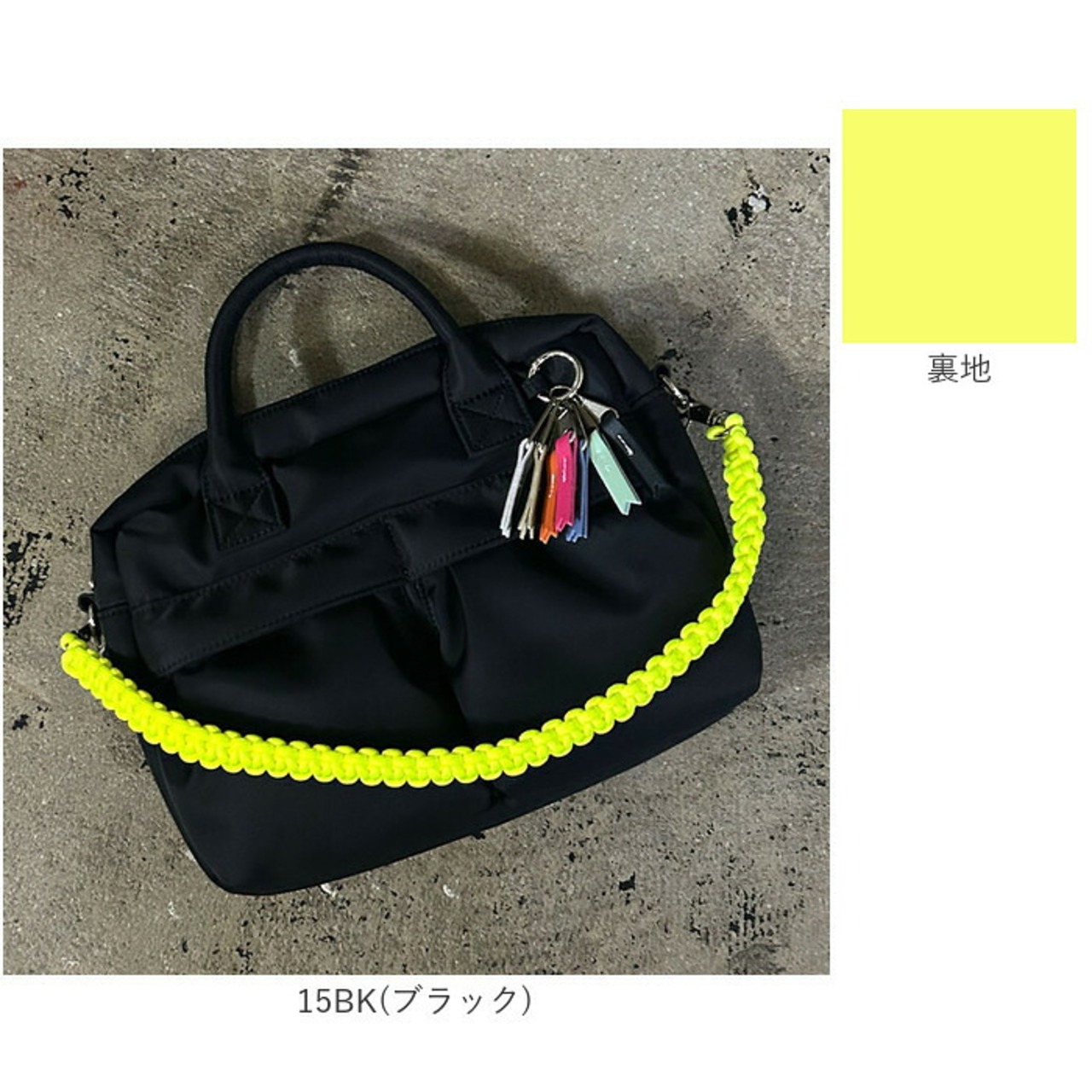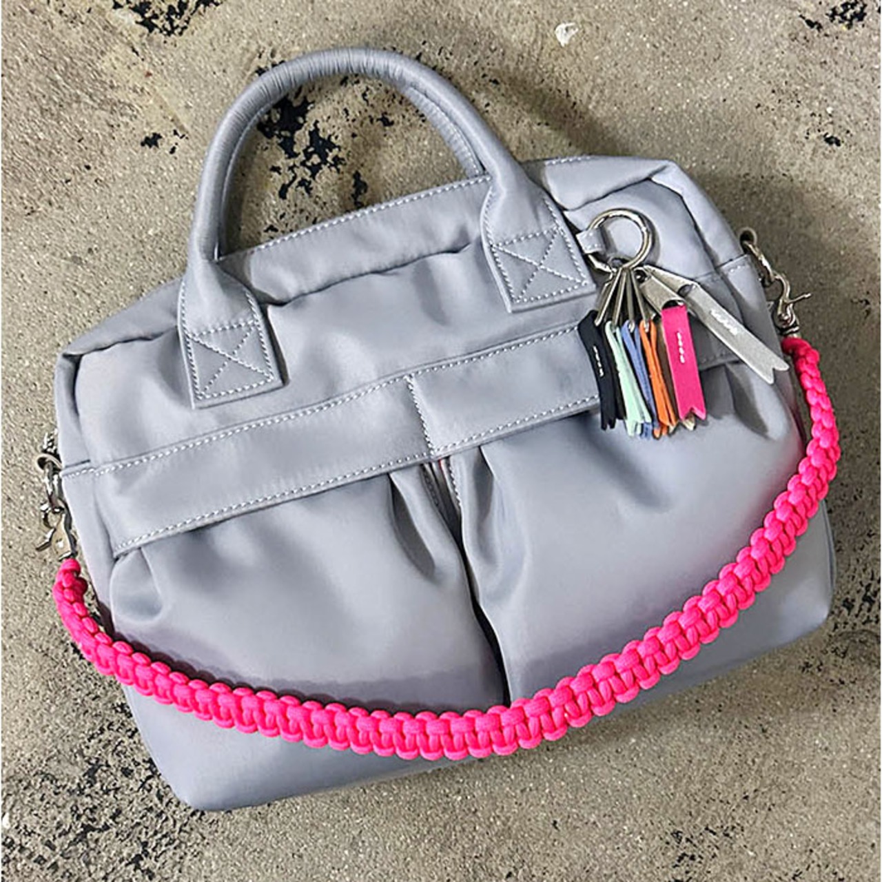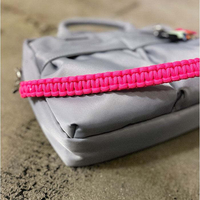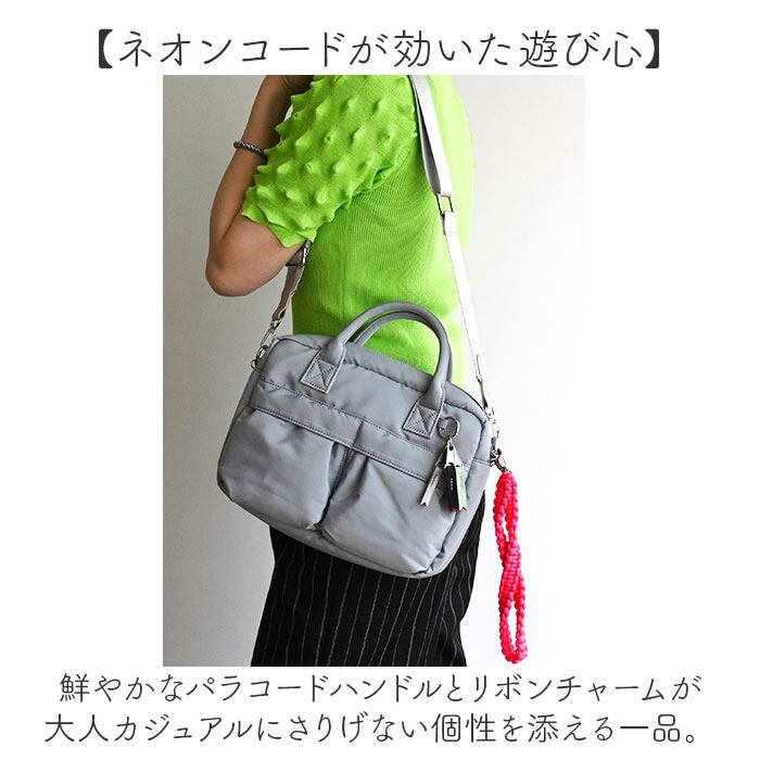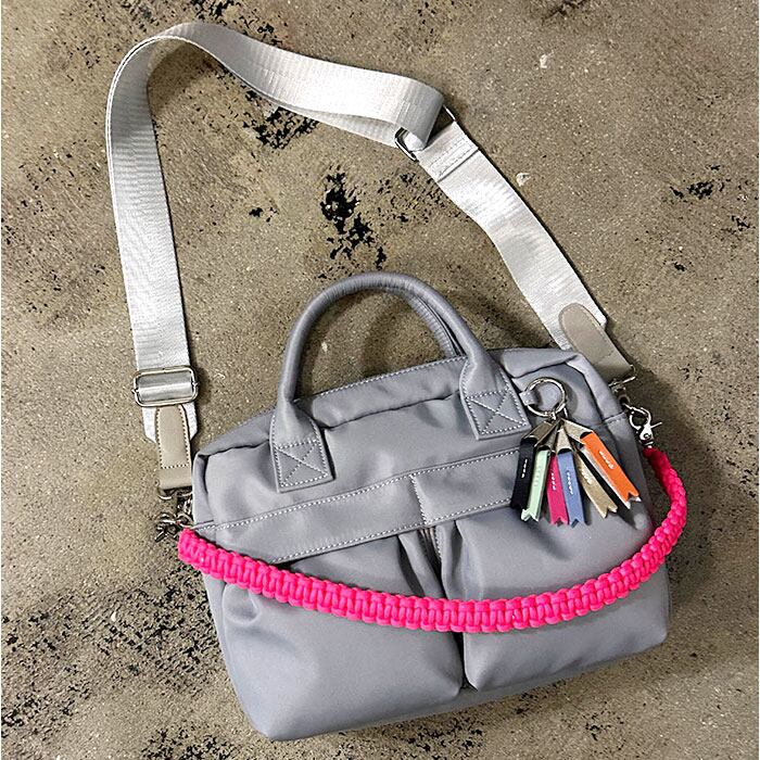 ・鮮やかなパラコードハンドルとリボンチャームが大人カジュアルにさりげない個性を添える一品。