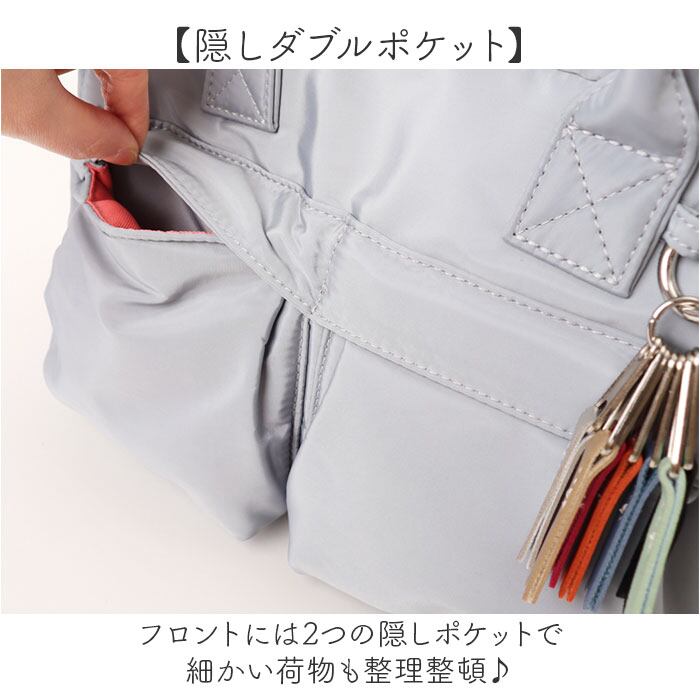 【隠しダブルポケット】フロントには2つの隠しポケットで細かい荷物も整理整頓♪