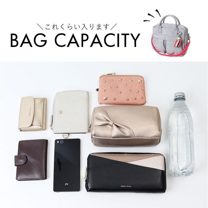 ・マチ有のボストン型で長財布や500mlのペットボトルも寝かせて収納可能なサイズ!
