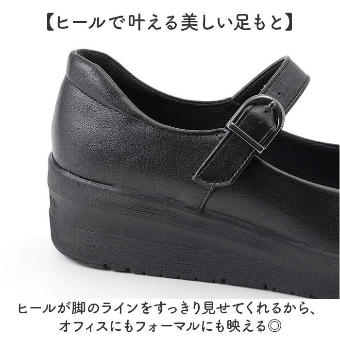 ・高めのヒールで足もとを美しく魅せるストラップパンプス。
