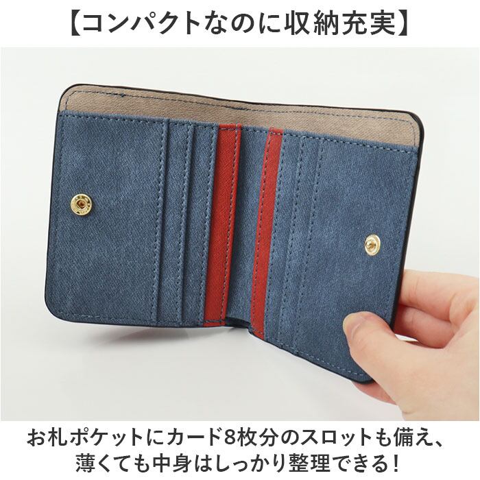 ・柔らかくて手になじむ合成皮革を採用し、毎日持ち歩きたくなるコンパクトウォレット♪