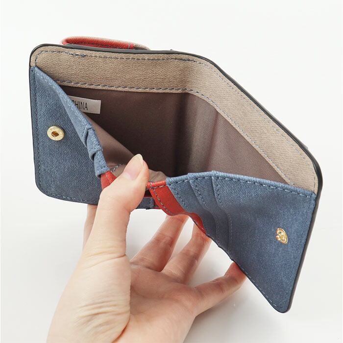 ・コンパクトなのに収納力も抜かりない、トライカラーの二つ折り財布