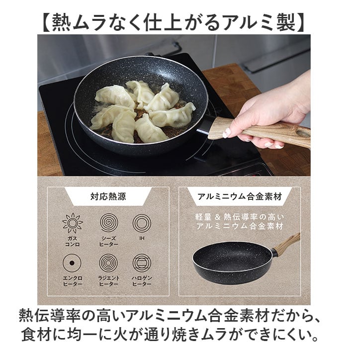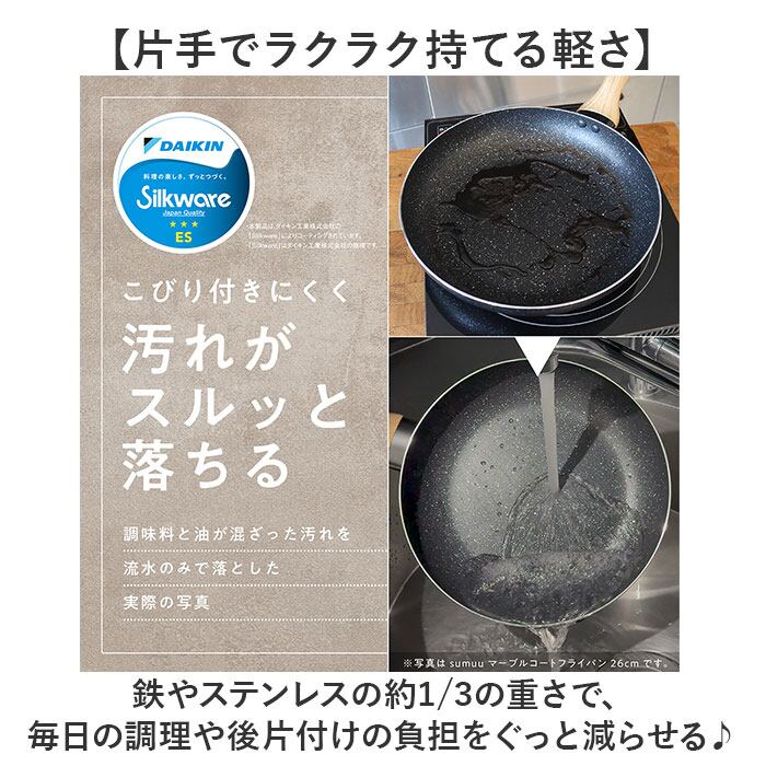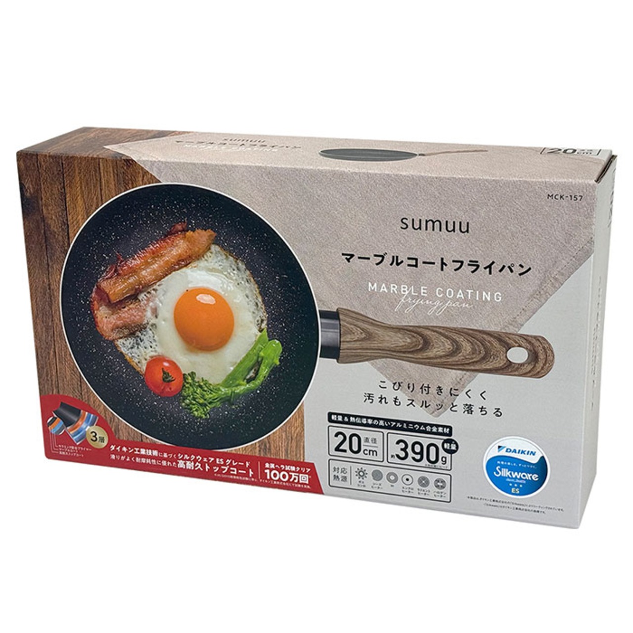 フライパンマーブルコート 20cm 通販 軽量 浅め 浅型 IH ih 兼用 一人 1人 ガスコンロ ガス火 直火 アルミ製 シルクウェア 軽い 熱伝導 一人暮らし 一人用 朝食 こびりつきにくい 調理器具 sumuu フッ素 キッチン用品 お洒落 おしゃれ