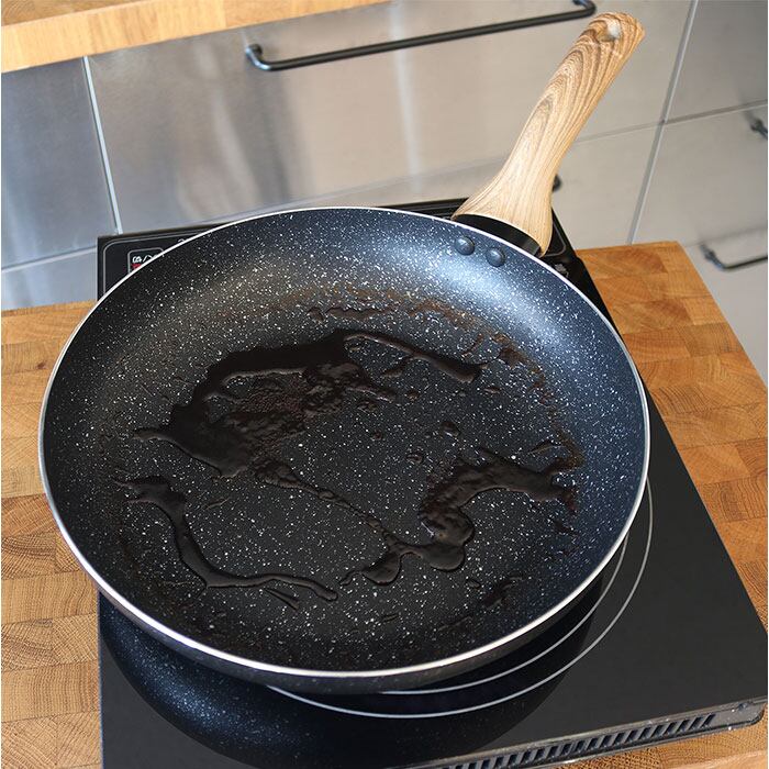 ・毎日の調理がラクになるマーブルコートの20cm浅型フライパン。