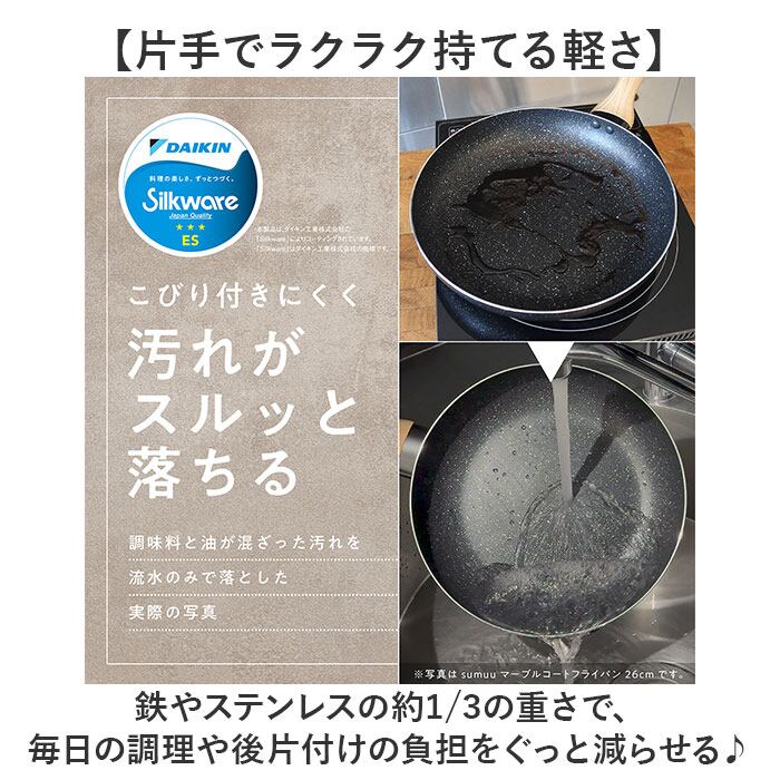 フライパンマーブルコート 24cm 通販 軽量 浅め 浅型 IH ih 兼用 一人 1人 ガスコンロ ガス火 直火 アルミ製 シルクウェア 軽い 熱伝導 一人暮らし 一人用 朝食 こびりつきにくい 調理器具 sumuu フッ素 キッチン用品 お洒落 おしゃれ