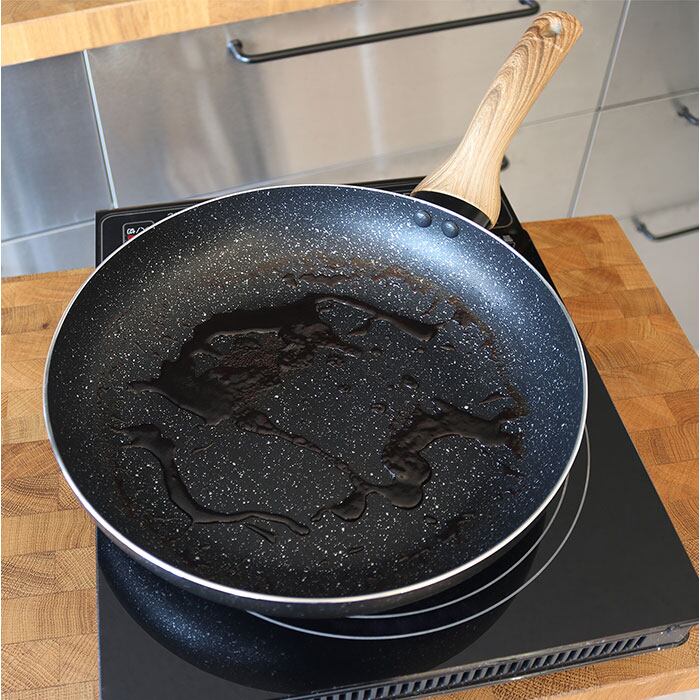 ・毎日の調理がラクになるマーブルコートの24cm浅型フライパン。