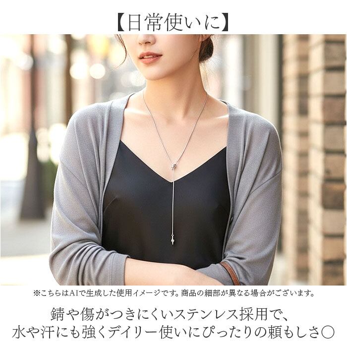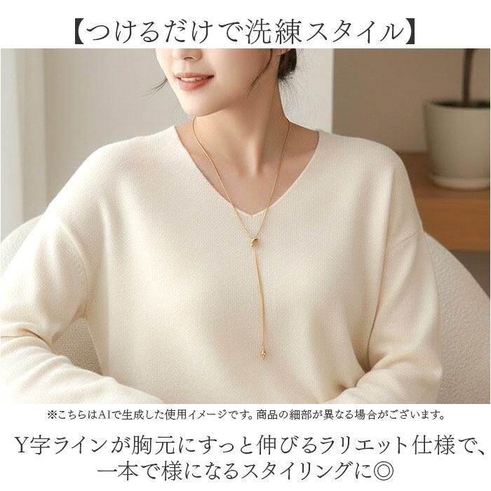 ・Y字ラインが胸元にすっと伸びるラリエット仕様で、一本で様になるスタイリングに◎