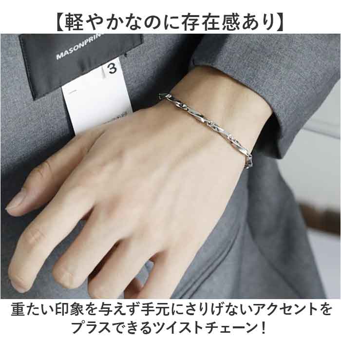 ・重たい印象を与えず手元にさりげないアクセントをプラスできるツイストチェーン!