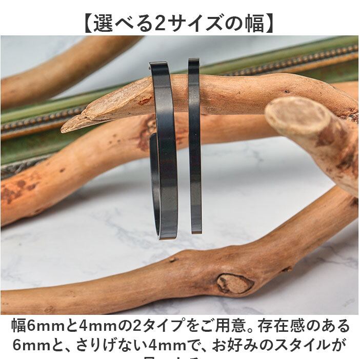 ・幅6mmと4mmの2タイプをご用意。存在感のある6mmと、さりげない4mmで、お好みのスタイルが見つかる。