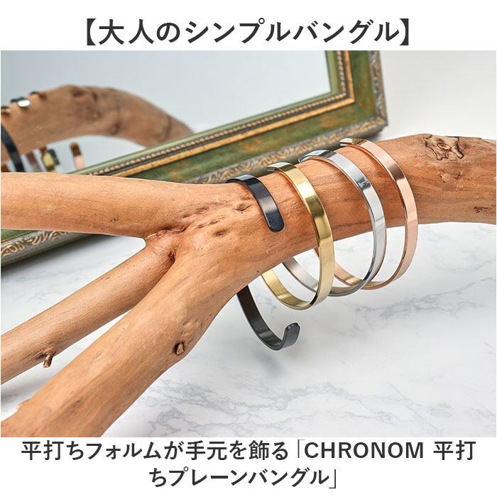・平打ちフォルムが手元を飾る「CHRONOM 平打ちプレーンバングル」