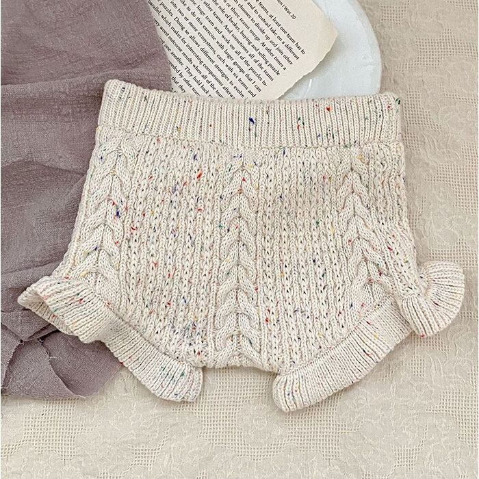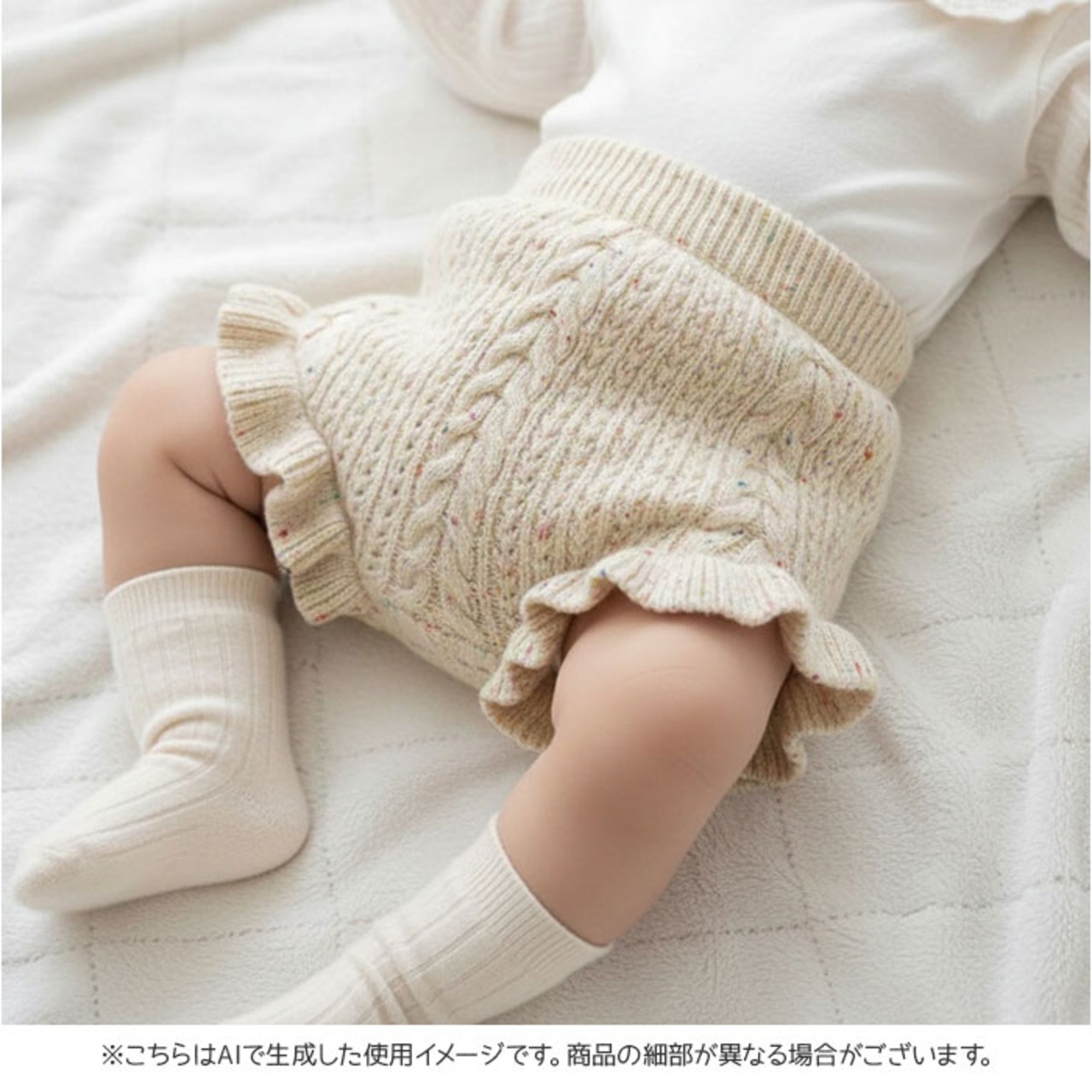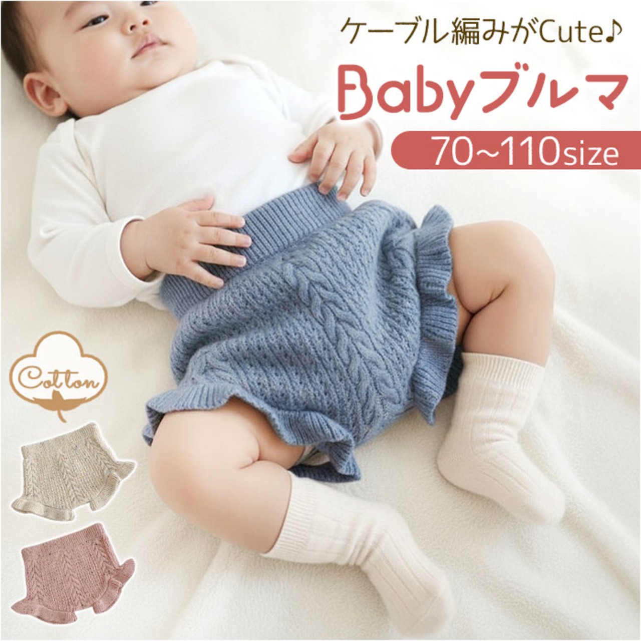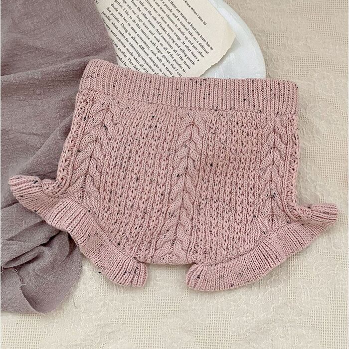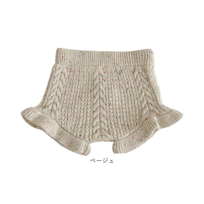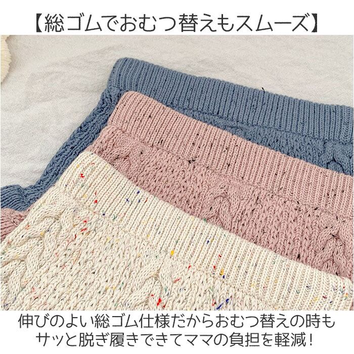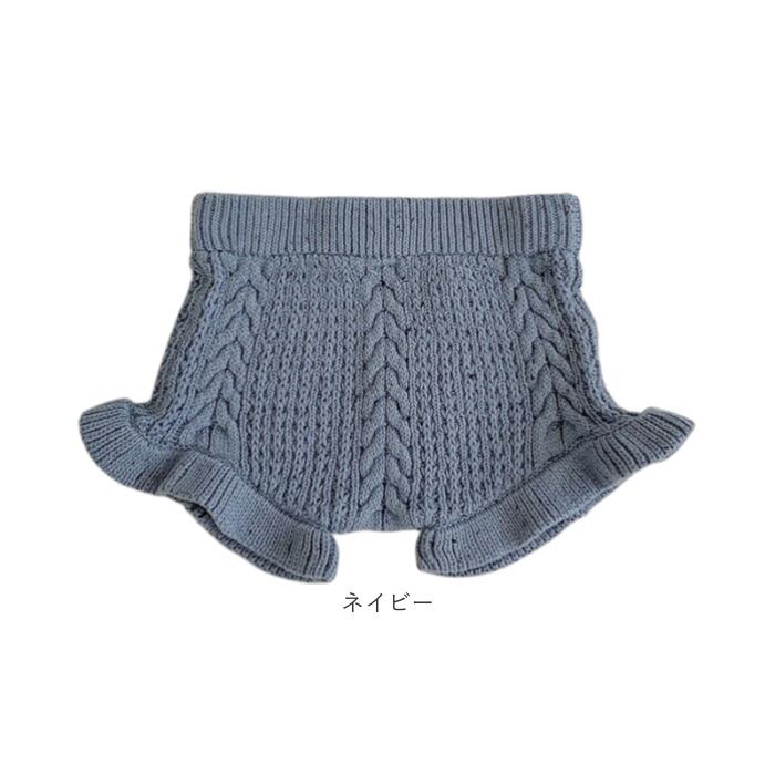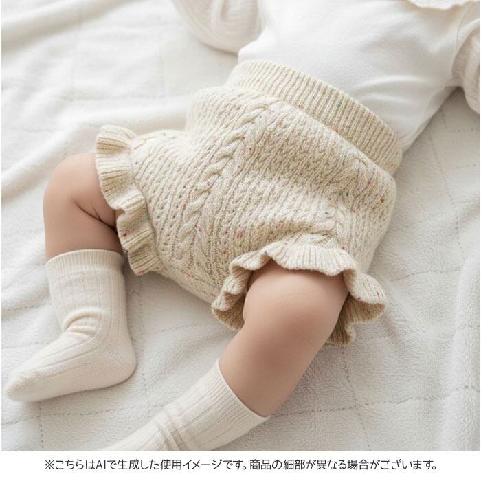 ・ケーブル編みとフリルがキュートなコットン100%のベビーブルマ