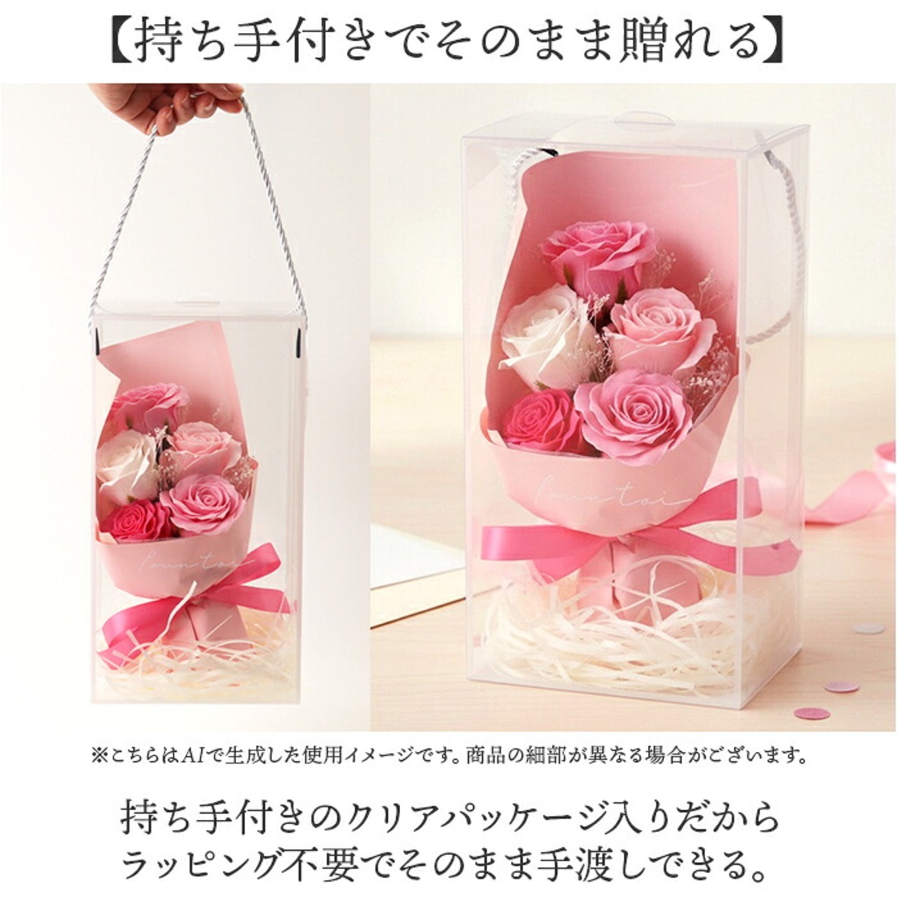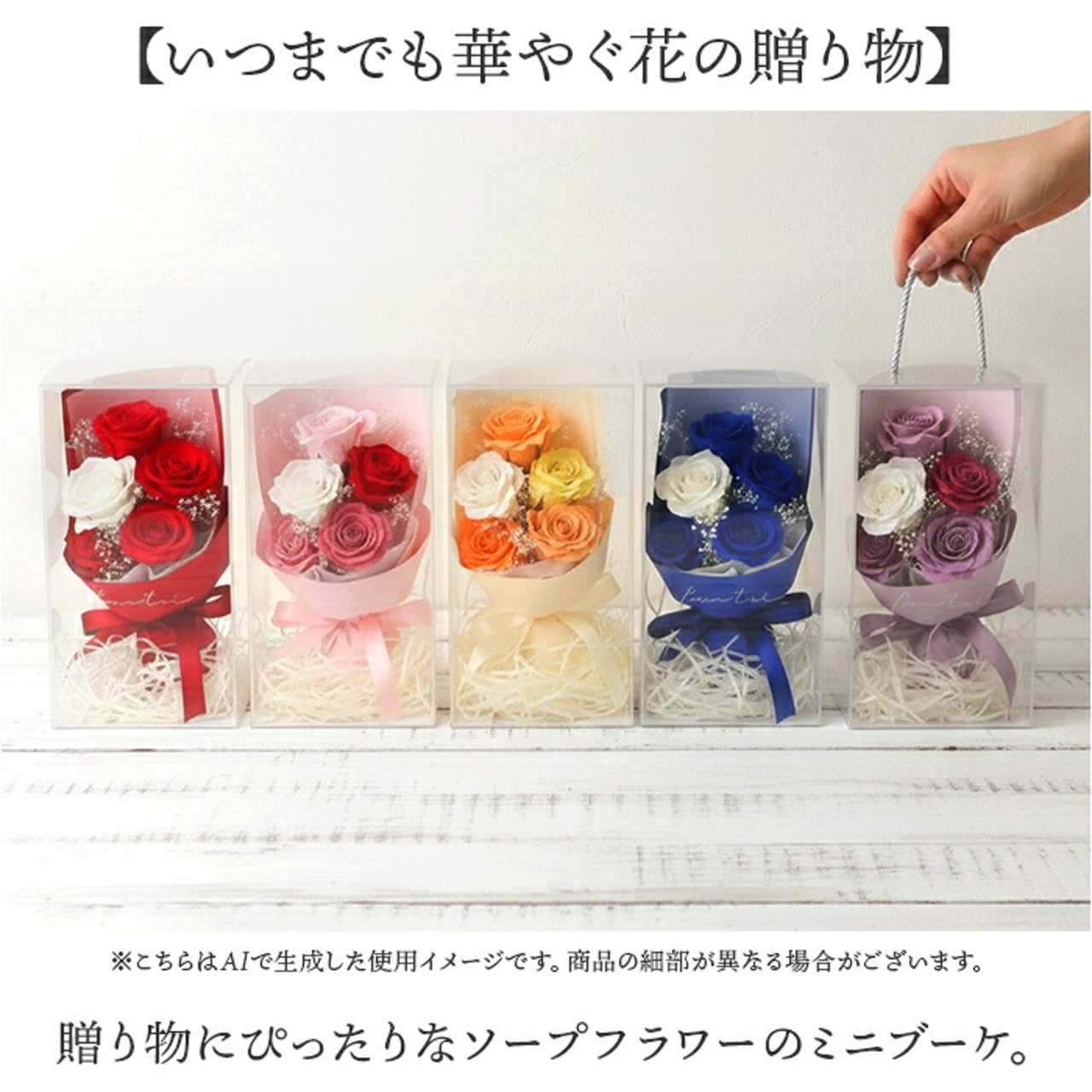 ・贈り物にぴったりなソープフラワーのミニブーケ。