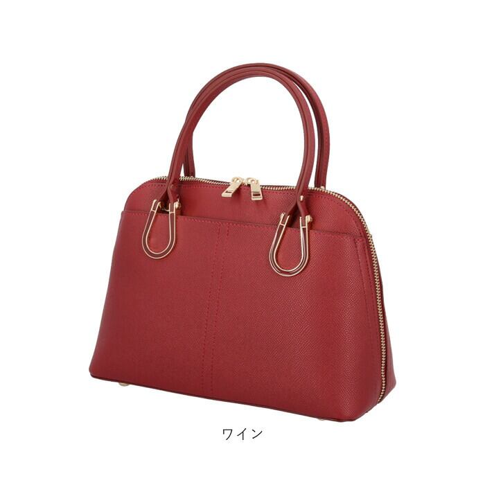 ・手持ちもショルダーにもなる上品なラウンド型バッグ。