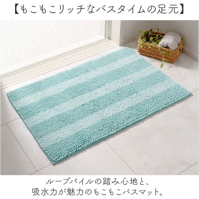 ・ループパイルの踏み心地と、吸水力が魅力のもこもこバスマット。