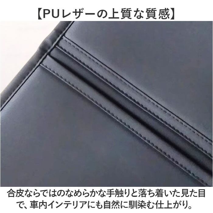 ・合皮ならではのなめらかな手触りと落ち着いた見た目で、車内インテリアにも自然に馴染む仕上がり。
