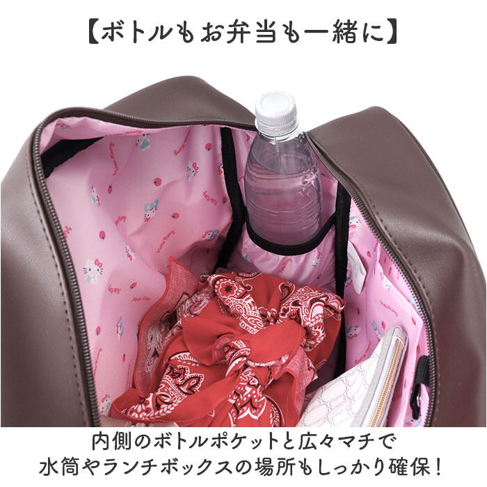 ・内側のボトルポケットと広々マチで水筒やランチボックスの場所もしっかり確保!