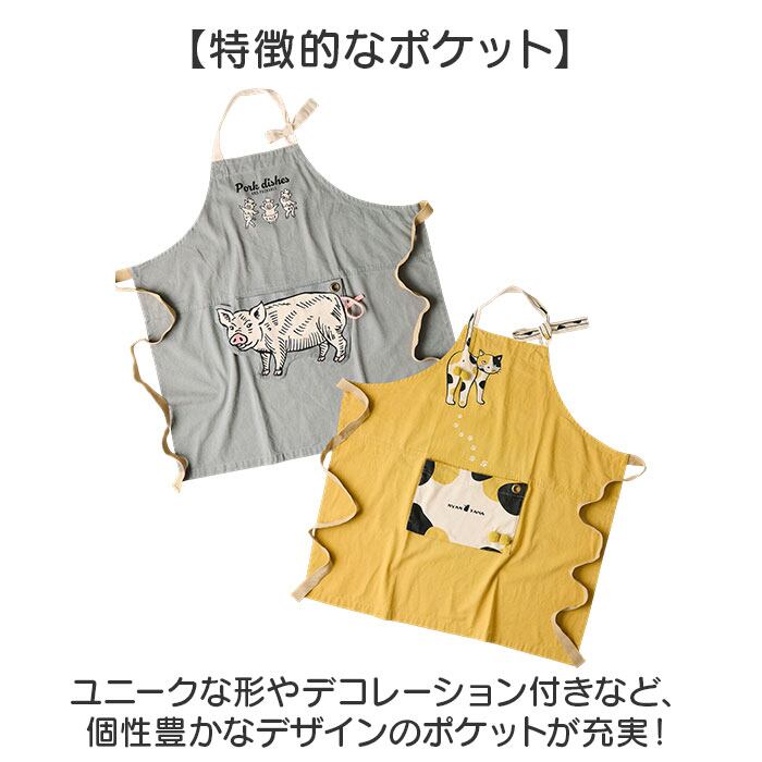 ・フロントの大きなポケットにエプロンを折り畳み、ポケットに収納できるので持ち運びに便利。
