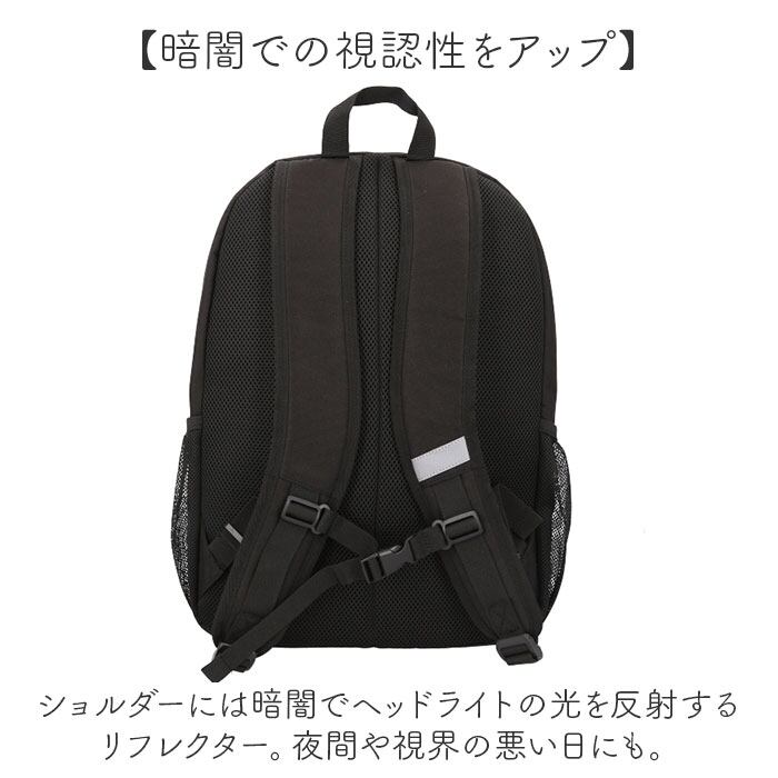 ・ショルダーには暗闇でヘッドライトの光を反射するリフレクター。夜間や視界の悪い日にも。