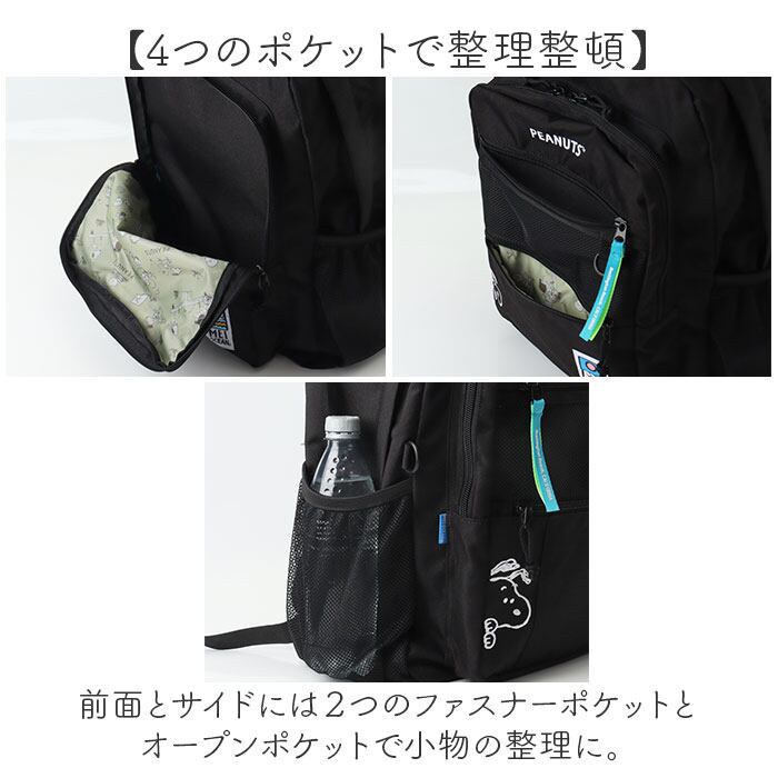 ・前面とサイドには2つのファスナーポケットとオープンポケットで小物の整理に。