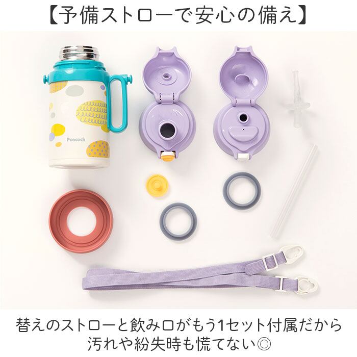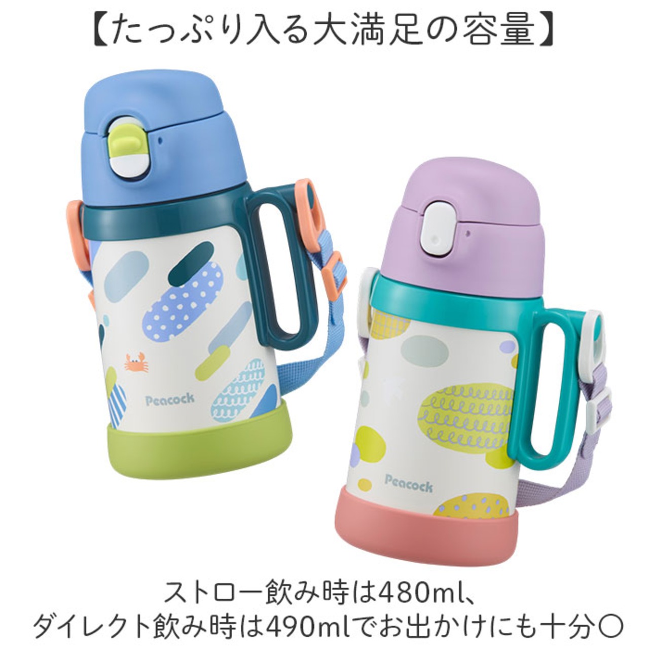 Peacock ピーコック ボトル 2WAY 通販 水筒 子供用水筒 子ども用水筒 ストロー ダイレクト 直飲み 子ども用 子供用 ハンドル付き 子ども こども 子供 ワンタッチ 開けやすい 水分補給 かわいい 可愛い ギフト 贈物 贈り物