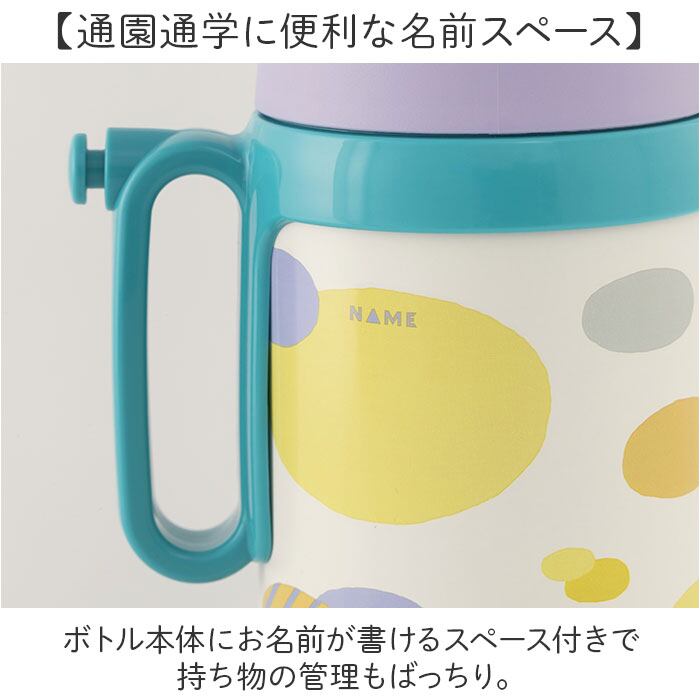 ・ボトル本体にお名前が書けるスペース付きで持ち物の管理もばっちり。