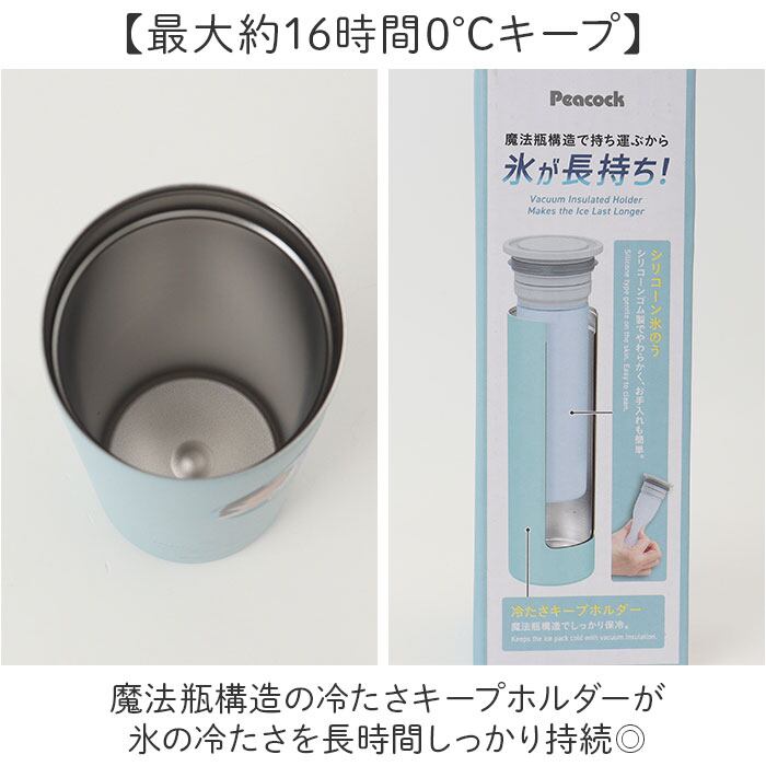 ・魔法瓶構造の冷たさキープホルダーが氷の冷たさを長時間しっかり持続◎