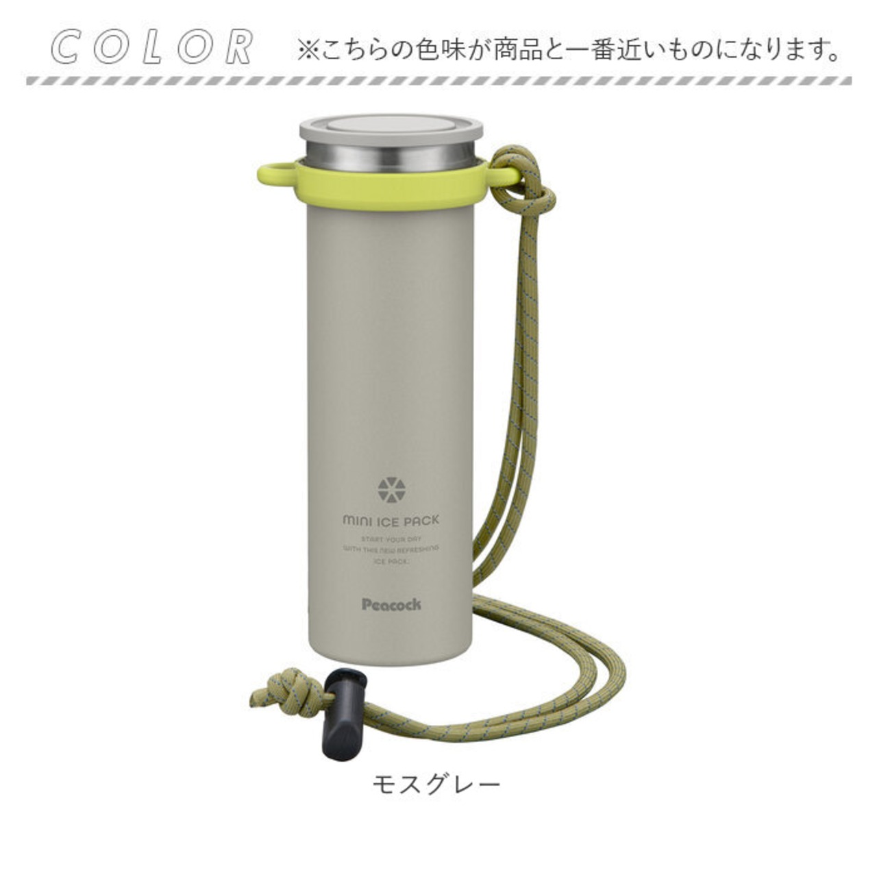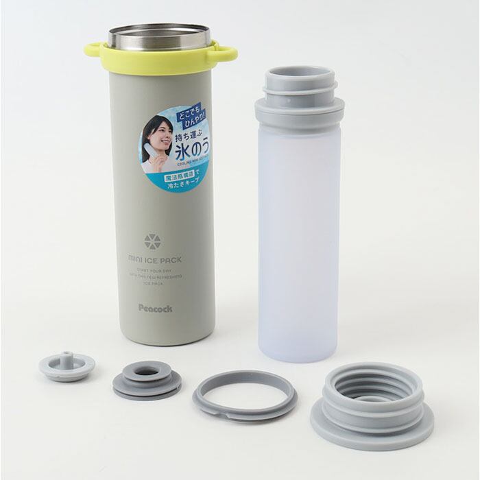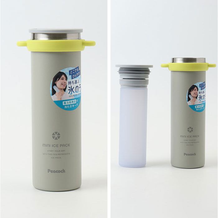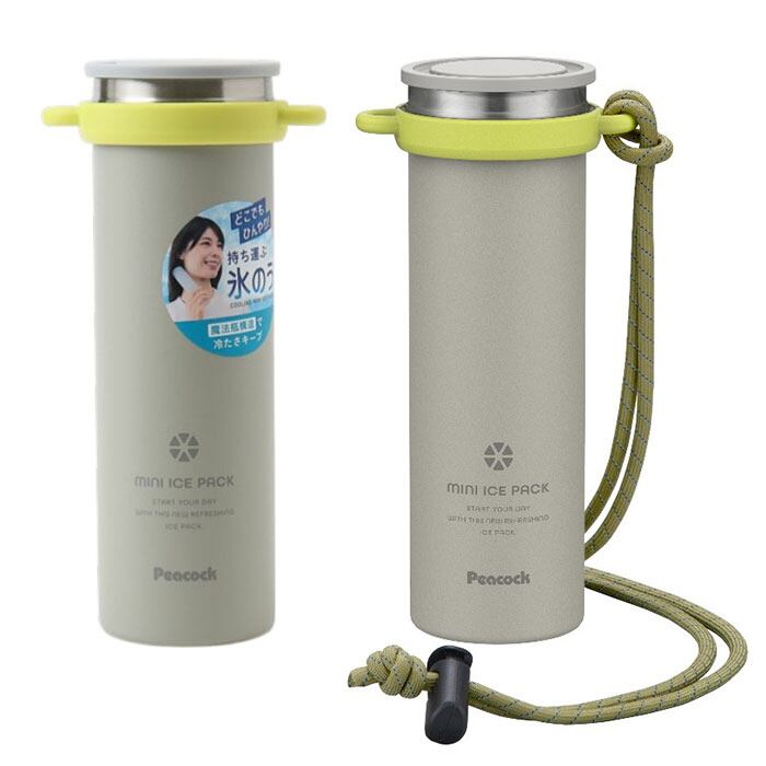・魔法瓶構造で冷たさを身軽に持ち歩ける「Peacockミニアイスパック ストラップ付き」
