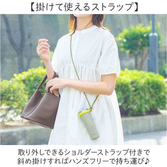 ・取り外しできるショルダーストラップ付きで斜め掛けすればハンズフリーで持ち運び♪
