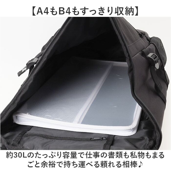 ・約30Lのたっぷり容量で仕事の書類も私物もまるごと余裕で持ち運べる頼れる相棒♪