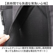 ・メッシュとクッション素材を背面に採用し長時間背負っても蒸れにくく快適な毎日をサポート◎
