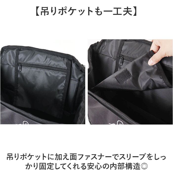・吊りポケットに加え面ファスナーでスリーブをしっかり固定してくれる安心の内部構造◎