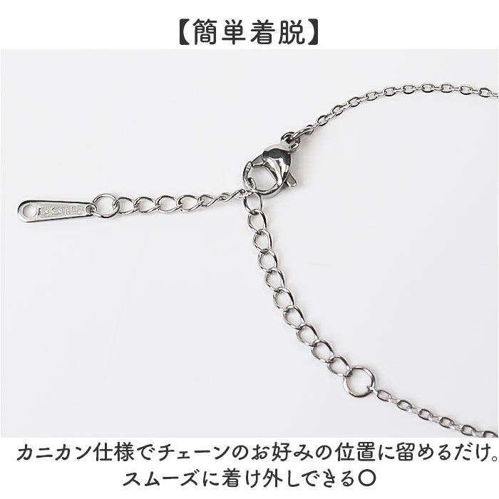 ・カニカン仕様でチェーンのお好みの位置に留めるだけ。スムーズに着け外しできる〇