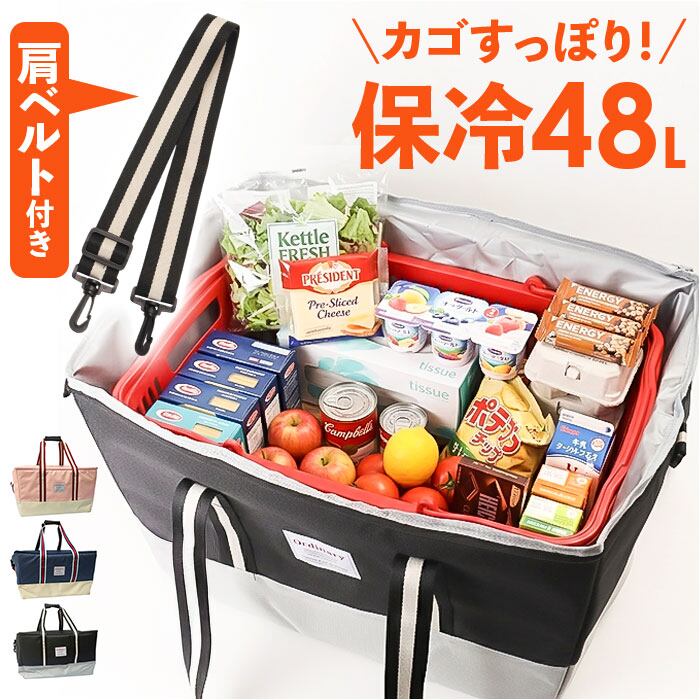 ・約48Lの大容量でレジカゴが丸ごとすっぽり入る毎日のお買い物に頼れる保冷バッグ◎