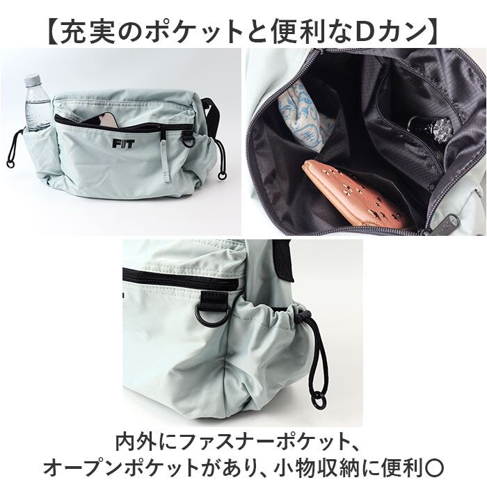・内外にファスナーポケット、オープンポケットがあり、小物収納に便利〇