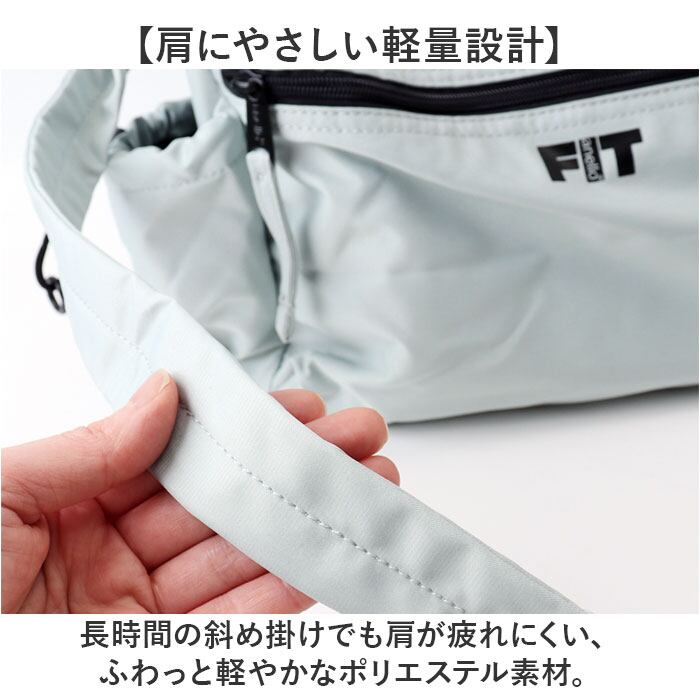 ・長時間の斜め掛けでも肩が疲れにくい、ふわっと軽やかなポリエステル素材。
