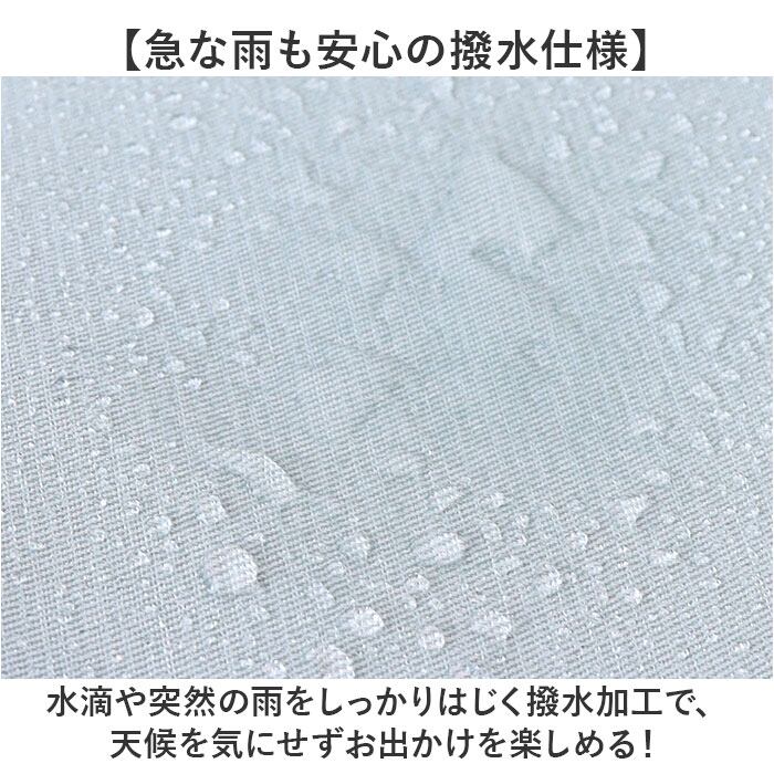 ・水滴や突然の雨をしっかりはじく撥水加工で、天候を気にせずお出かけを楽しめる!