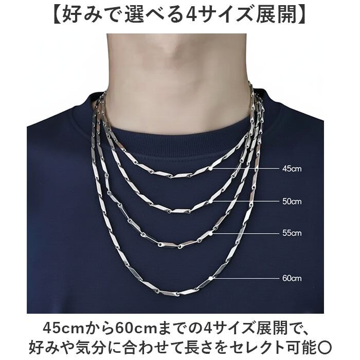 45cmから60cmまでの4サイズ展開で、好みや気分に合わせて長さをセレクト可能〇