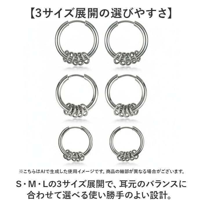 ・S・M・Lの3サイズ展開で、耳元のバランスに合わせて選べる使い勝手のよい設計。
