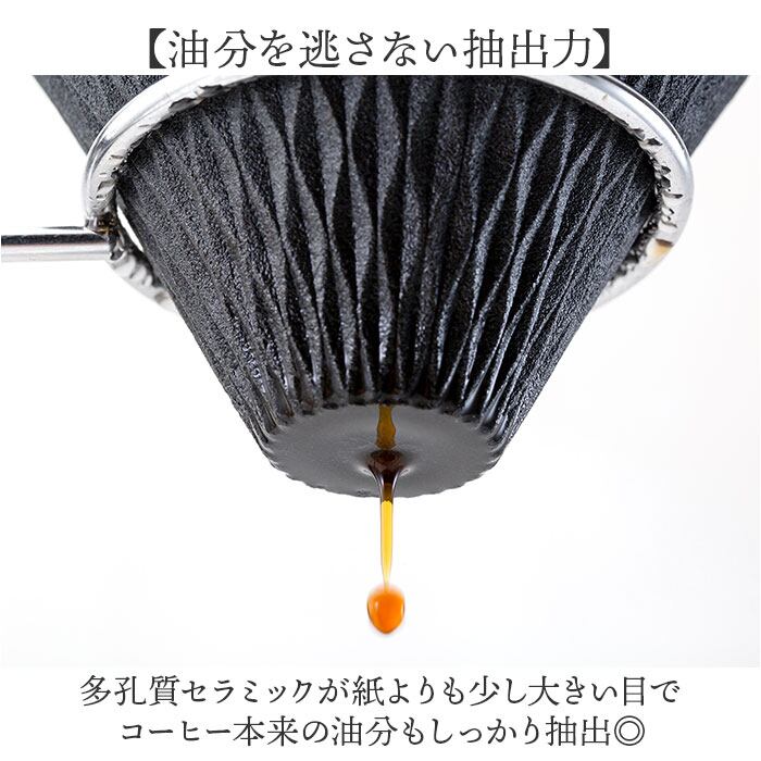 ・多孔質セラミックが紙よりも少し大きい目でコーヒー本来の油分もしっかり抽出◎
