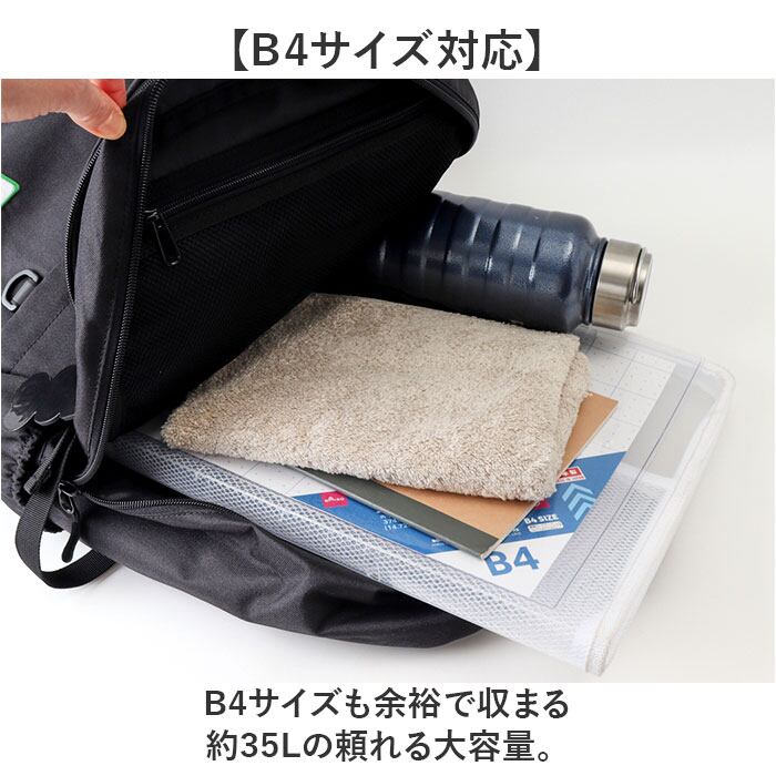 ・B4サイズも余裕で収まる約35Lの頼れる大容量設計。
