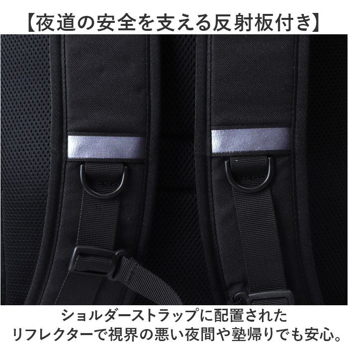 ・ショルダーストラップに配置されたリフレクターで視界の悪い夜間や塾帰りでも安心。