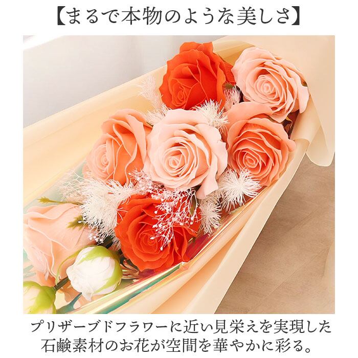 ・石鹸素材でつくられたお花だから、お水やお手入れは一切不要で美しい姿がずっと長く続く◎