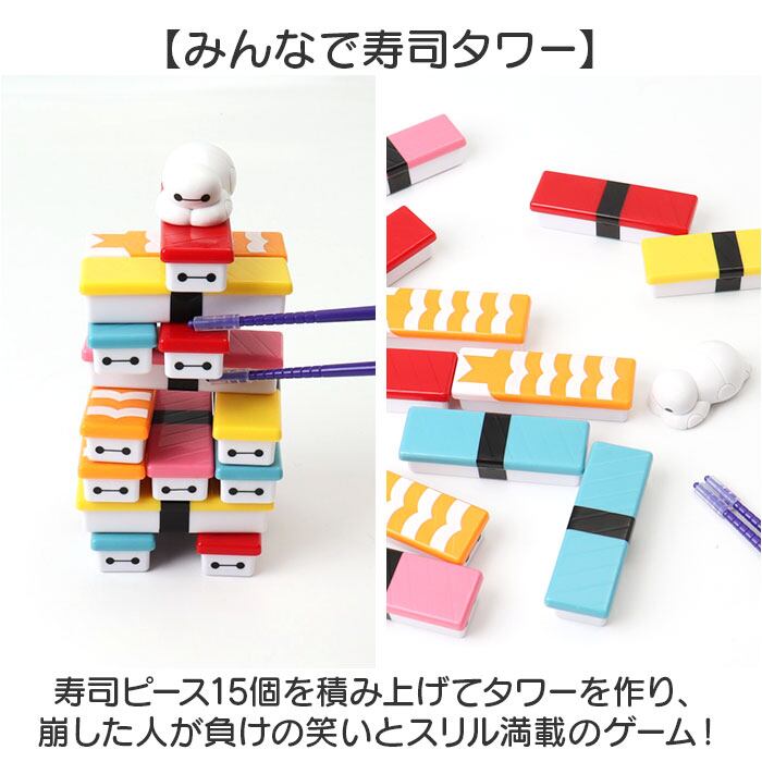 ・寿司ピース15個を積み上げてタワーを作り、崩した人が負けの笑いとスリル満載のゲーム!