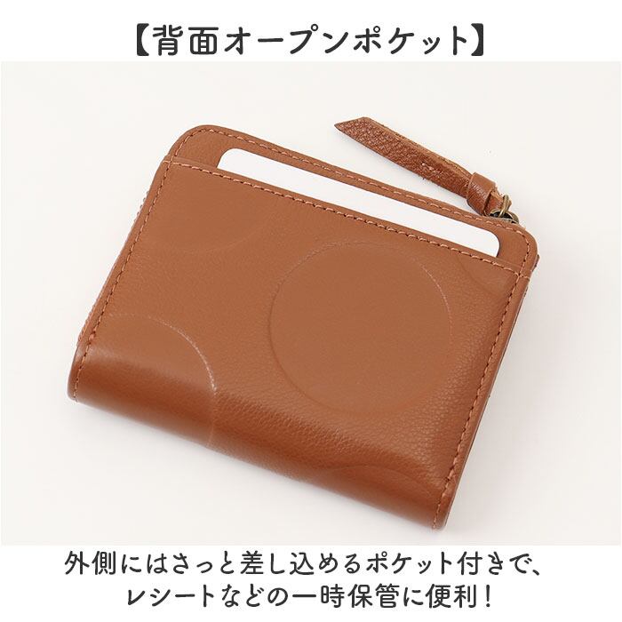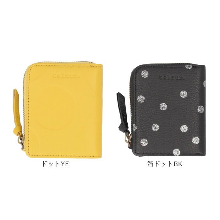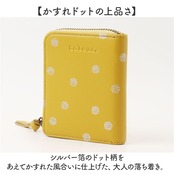 ・柄は大きめの型押しドットと、シルバー箔のドット柄の2種類。上質カウレザーの二つ折り財布。