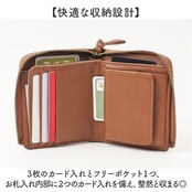 3枚のカード入れとフリーポケット1つ、お札入れ内部に2つのカード入れを備え、整然と収まる◎