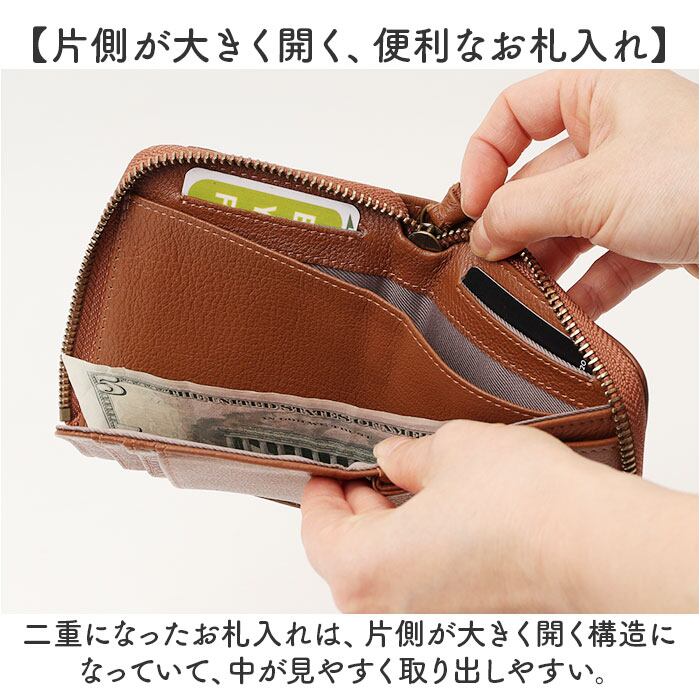 ・二重になったお札入れは、片側が大きく開く構造になっていて、中が見やすく取り出しやすい。
