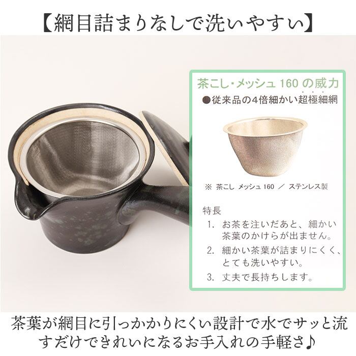 ・JIS規格のステンレス素材を採用した茶こしは錆びにくく丈夫で毎日安心して使える耐久性!