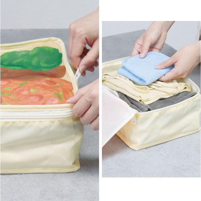 ・二つの異なるサイズがセットになり、散らかりがちな旅行鞄の中をスッキリ可愛く整理。